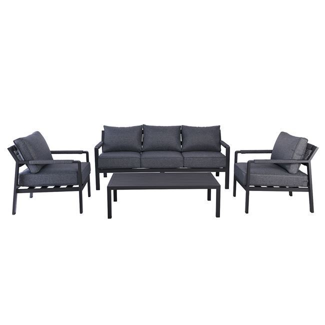 Set Σαλόνι Κήπου ALU: 3Θέσιος+2 Πολυθρόνες+Τραπέζι Σκελετός & Μαξιλάρια Ανθρακί